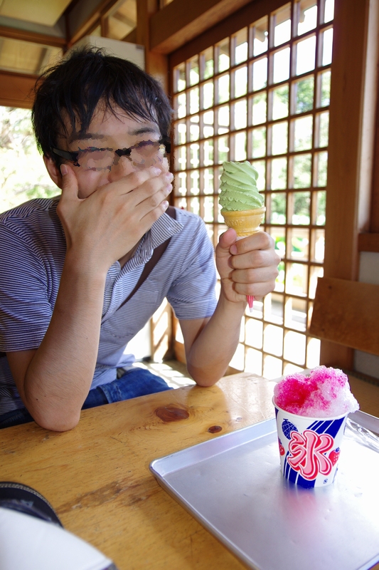 って、勝手にウケてる友人を激写。私は王道のカキ氷。美味しかった!