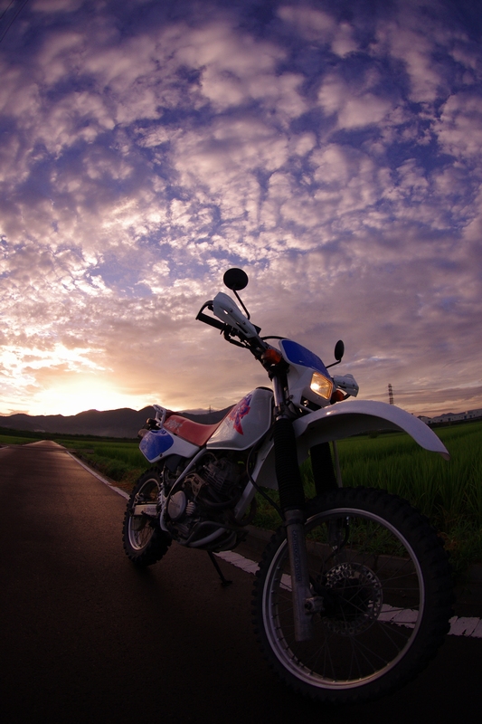 洗車後にぶらりと近所を走って、バイクを降りてぼやっとしていたら良い感じの夕暮れになったので撮りました。3回連続バイク写真更新とはかなり乙ですな。
