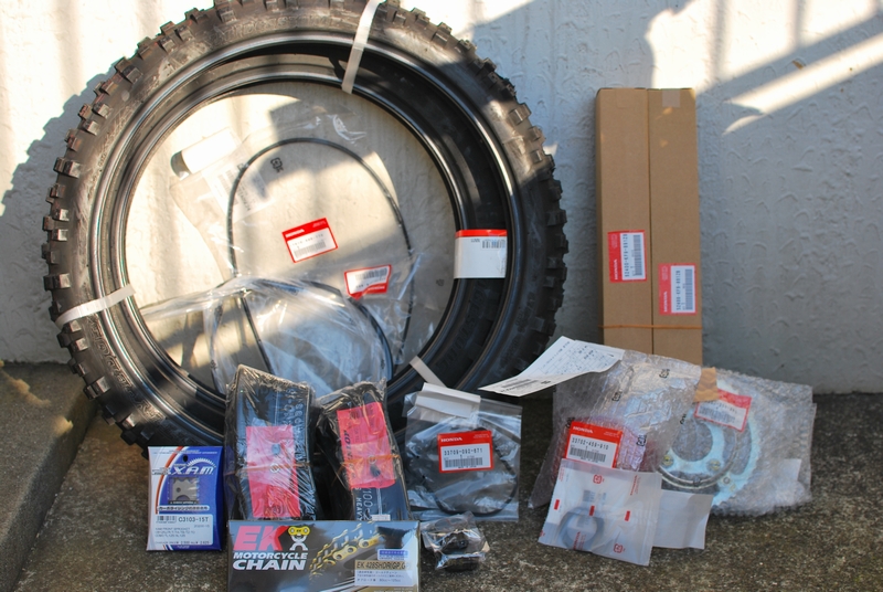 今回は消耗品を主に交換。もちろん、ただ交換するだけではなくエンデューロレースを見越した部品に。主な部品は以下の通り(前に、今回のレースを見越して交換したもの含む)