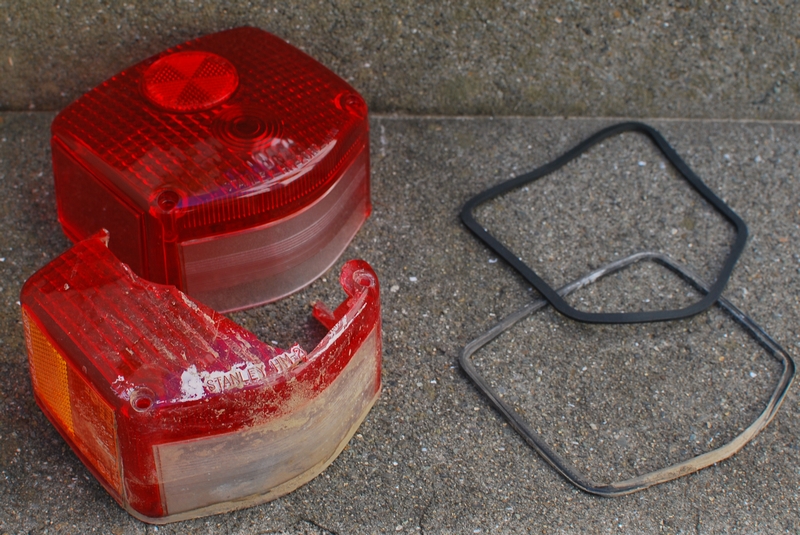 あと、ずっと放置していた割れたままのテールレンズを交換。写真下のが純正。上のはCT110のオーストラリア仕様車のもの。側面のリフレクターがチープになっているのがわかりますね。