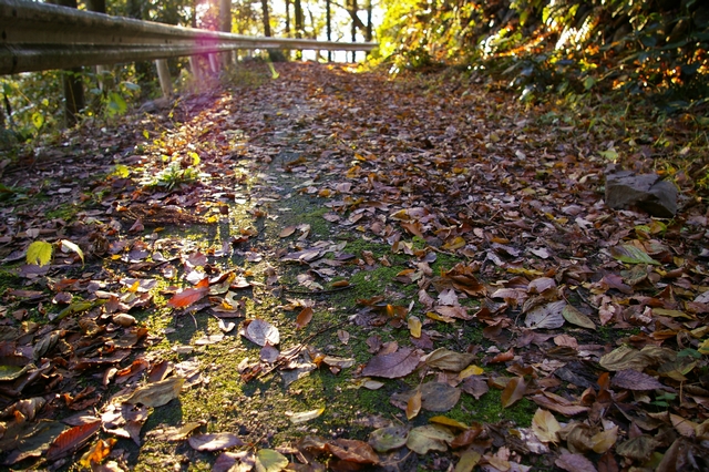 逆光の落葉