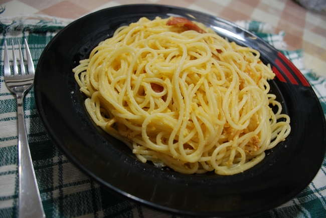 私、特製のパスタ・カルボナーラですっ!!