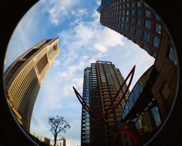 横浜ランドマークタワー前で撮影したもの。かなり上を向いて撮影した気がします。ビルがぐんにゃりと曲がって面白い一枚。イイネ!(・∀・)