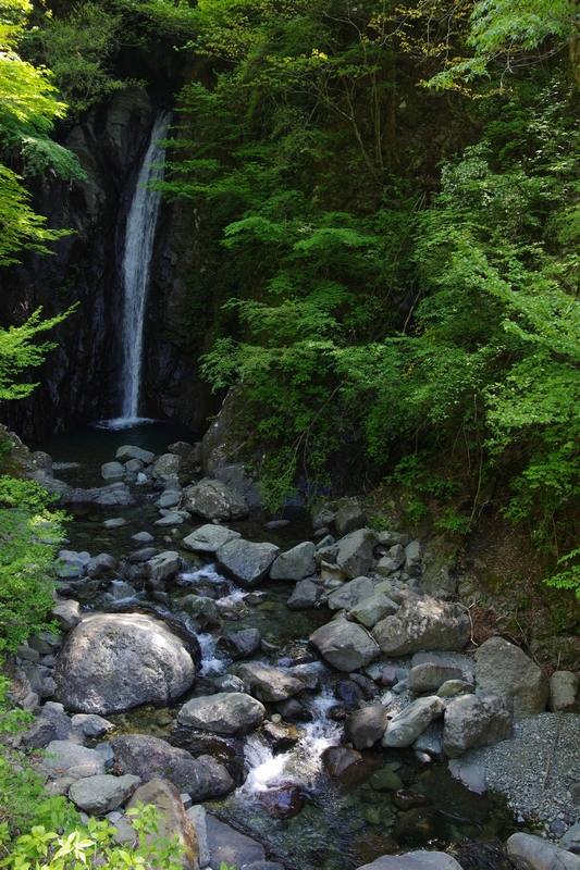 夏場になると下流にあるキャンプ場から、わなわなと家族連れが上がってきて騒がしいのですがまだハイシーズンではないので静寂の中、滝つぼに水が叩きつけられる音だけが木霊していました。
