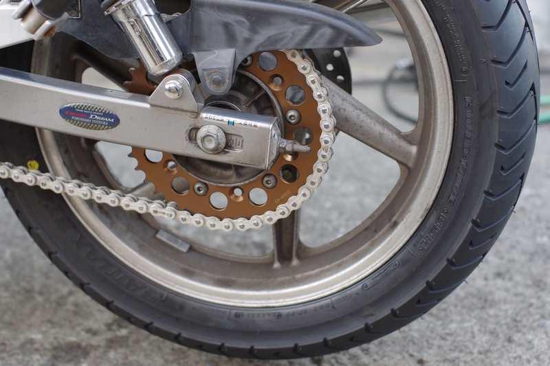 実際に交換して見ると、やっぱり加速がスムーズ!!いゃ、帰り道はトコトコ楽しく走らせて頂きました。まず、チェーン&スプロケそしてダンパを交換したおかげでシフトチェンジ時のもたつきが解消されていて気持ち良い。そして、タイヤ交換して山が復活したのでコロコロ走ってゆく感じが気持ち良い。とにかく、消耗品は消耗したら交換せねば!という事を痛感したのでしたw