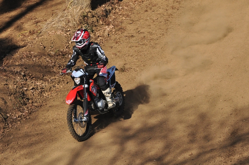 もう一台がこちらの青い車輌。人生初2スト車輌でした。いゃ、凄いね。パワーバンドってやっぱり2ストに似合う言葉だなって感じました。ちなみに、写真は意に沿わず急加速してジャンプしている写真(笑) 搭乗者がビビって腰を引いているのがよくわかります。