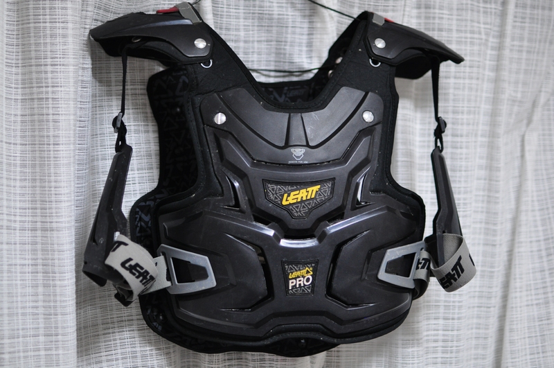 胸部・腹部・背部・肩・上腕に対するプロテクター。上半身に対するプロテクターは、服の中に着るタイプのものと写真のような服の上に着るタイプのものがあります。私は、プロテクターが服の上に来るタイプのほうが好きです。理由は簡単で、服の洗濯が楽になるからってだけです(笑) ちなみに、仲間内ではこのタイプのプロテクターはベジータ戦闘服と呼ばれてます(笑)