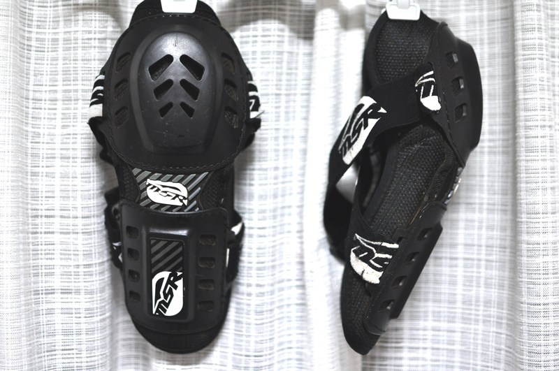 膝から脛(すね)までをガードするプロテクター。ひざだけをガードするプロテクターもあるけれど、オフブーツの中にプロテクターを入れることを視野に入れるとこの長さがあるほうが良いですね。
