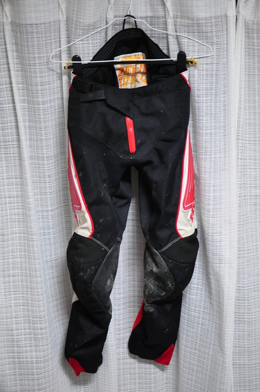 レース参戦を視野に入れて購入。完全にデザイン重視で買いました。他のオフジャージが、原色を多用しているのが多くて地味目なものを選んだつもり・・・派手だけど(笑) 買った後にモトパン内に太ももにパッドが入っていることを知りました。物によるのかも。
