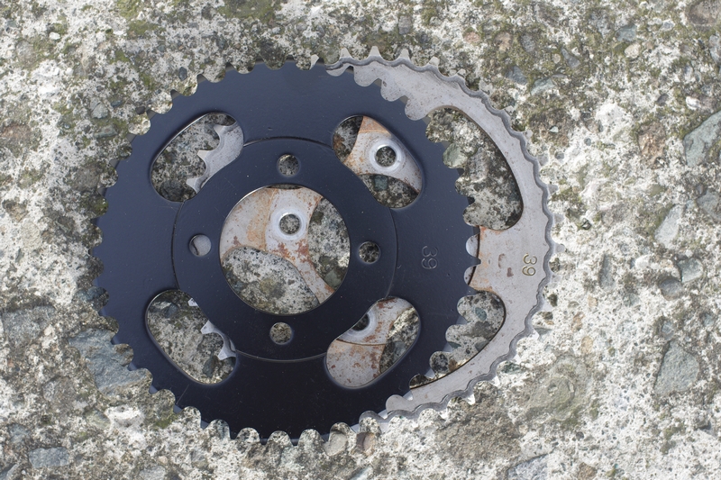 RスプロケはKITACOから出ているこちらも純正丁数。私は利便性を犠牲にしたカスタムってあまり好きじゃないので、チェーンカバーは外さない主義です。ゴミ入らない分、チェーンの伸びが遅い気がするしね。だからスプロケの色にはあまり抵抗がないです。なので、適当にキタコ。