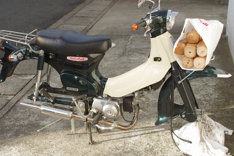 とりあえず、外してしまったからタイヤを交換しよう!と思ったのですが、タイヤレバーを自宅に忘れてきており、作業場所である実家から一時間ほどかかるうえにカブは前後輪外された状態・・・