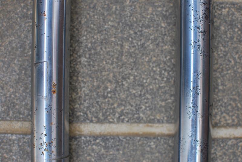とは言うものの、点錆は既にメッキをスルーしてインナーチューブの内部まで錆を広げているようでした。インナーチューブも交換しなきゃ、だったけれど・・・稼動部に錆がない(と願いつつ)、見ないことに(笑)