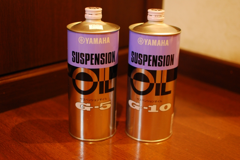 ホンダに問い合わせた結果、XL125Sの純正フォークオイルはホンダのATフルードらしいのですが、そんな希少なものは手に入らないので、同等粘度のフォークオイルを。一応ATフルードはSAE7.5Wらしいのですが、フォークオイルの粘度は結構差があるらしく耐熱表(?)みたいので確認。ATフルードの粘度はは25位(40度の時)ってことで、YAMAHA純正オイルのG-5とG-10を5:5で配合して同等の粘度を確保!