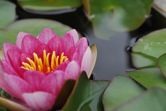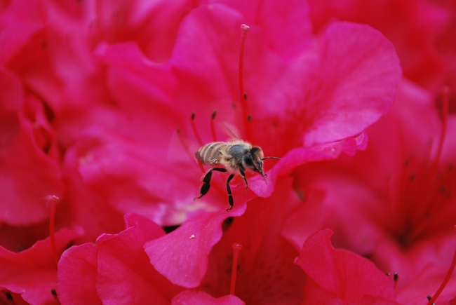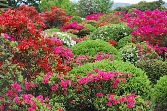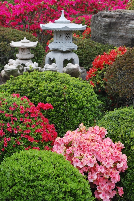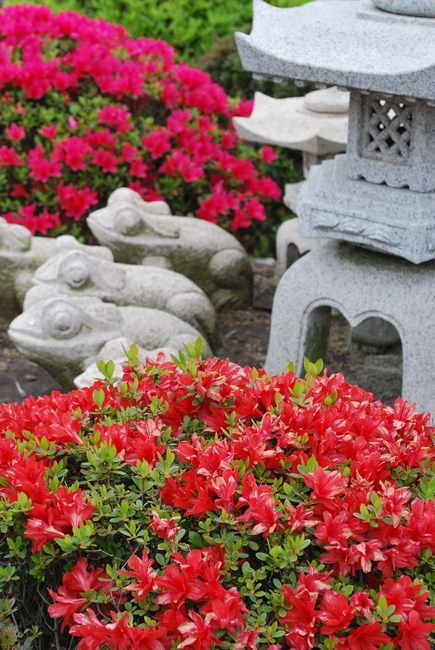 手前のピンク色のツツジはもうピーク過ぎてますね。もう少し早くくればよかった・・・残念。 園内(?)にはツツジとサツキが本当にいっぱい植わっています。 睡蓮も一輪だけ咲いていました。写真の右上を良く見るとおたまじゃくしが写っています。偏光フィルターが欲しい!(笑) 灯篭と蛙の大群とツツジ。こっちも少しピーク過ぎてる。あぁぁぁぁぁ・・・ でも、色鮮やかな部分も残っていて天気は悪かったのですがそれなりに楽しめました。 [ D60 AF-S DX NIKKOR 18-55mm f/3.5-5.6G VR ]