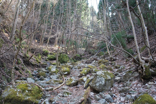 ちなみに、歩いていく山道はこんな感じ。間違っても「道じゃねぇよっ!」とか突っ込んではいけません。所々につけられているマーカーを目印にして進んで行きます。暗くなったら間違いなく遭難できます(苦笑)