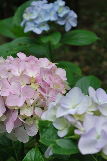 三色アジサイ。淡い色がとっても綺麗でした。