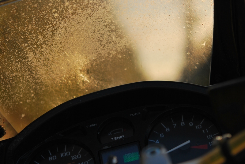 ブレーキフルードが付着したところはこんな感じで真っ白に。とりあえず、メーターパネルに飛び散ったのはその場で軽く拭いたけど。ウィンドスクリーンはダメダメだ・・・磨かなきゃね。