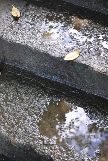 神社の階段にできていた水溜りを撮ってみました。ちょっと明るすぎな気もしますが、今日の中ではベストショットかな??
