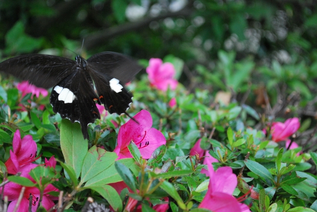 境内のサツキに蝶がとまっていたので撮影。この蝶、実は凄くすばやい。まともに撮れたのがこれくらい。もっと練習しないと・・・