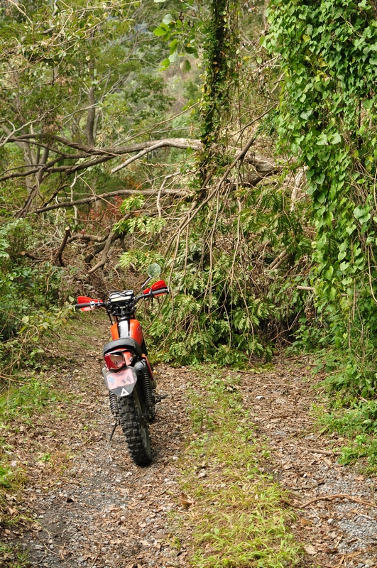 ちなみに写真は入ってから、調子が上がってきた頃に現れる倒木(笑) 引き返そうかとも思ったのですが、良く見ると先人達が通った後を発見。古いバイクとは言え、オフ車の端くれのバーニィ。思い切って倒木とラップを突破!(※帰りにここでコケましたけどw)
