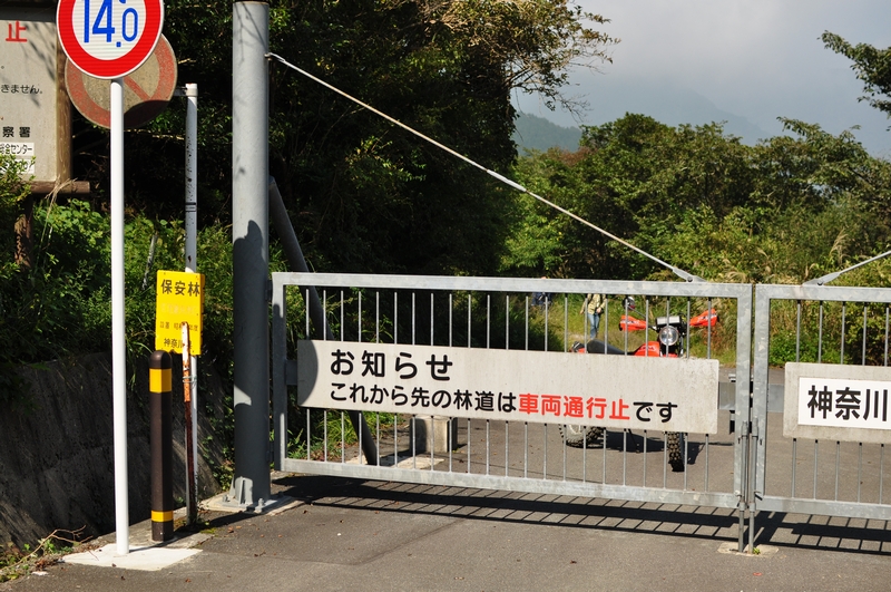 道幅は1~1.5車線くらい。走行中に車が正面からきたらおそらく逃げ道はない感じかな。おそらく、相手がバイクでも危ないところはある。そもそも、林道の途中が山道になっていてハイカーがそこそこいる。僕が走ったときは3組とすれ違った。ちなみに、車は0台でバイクが最後に一台(セロー)とすれ違った。