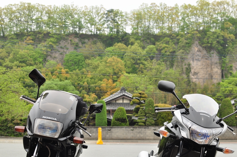 甲州街道は淀むことなく流れていました。写真は山梨県韮崎付近だったかな?コンビニで休憩した際に撮りました。背景の崖が凄いことになっていて、「似非中国だー!」って笑いあいました。