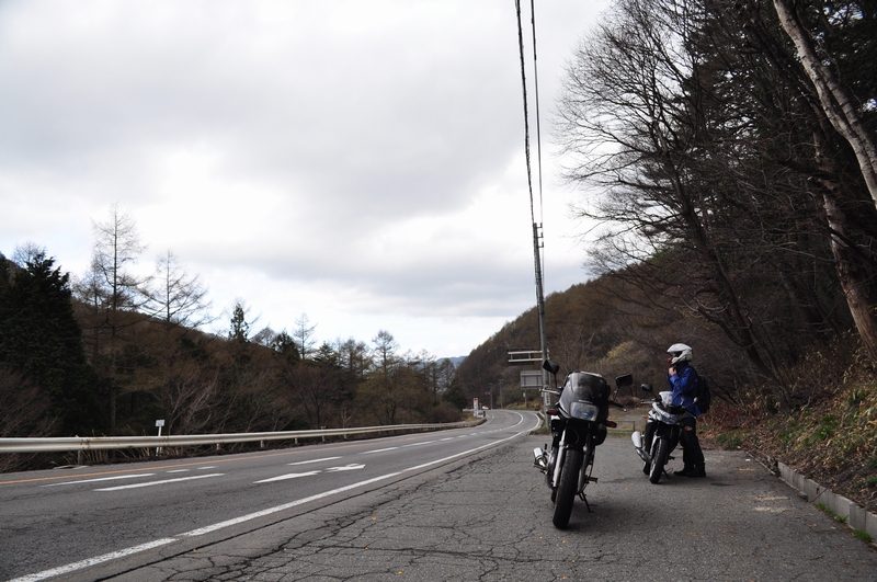 ヴィーナスラインに近づけば近づくほど悪くなる天気(苦笑) 気温も徐々に下がってきたので、友人はレインコートを着込みました。