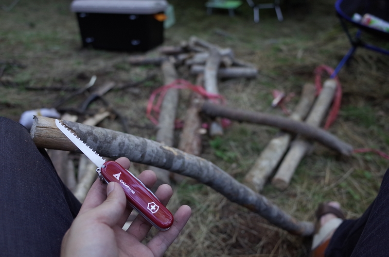 しかし、今回は全員マルチツールを装備!私はVictorinoxのCamperをチョイス。極力軽量で、ナイフとノコギリが欲しかったのでこれを。友人は一回り大きいアウトライダーNLを持参していて、ノコギリとして使うなら大きい方が便利だなーって思いましたw