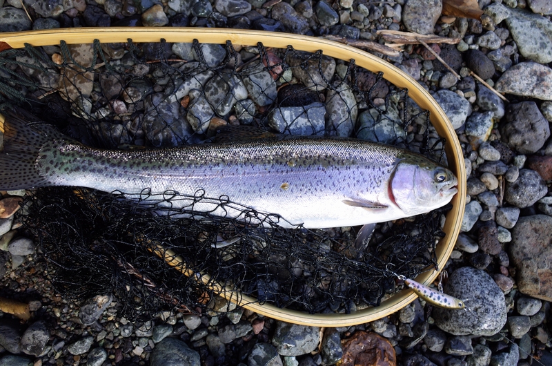 桂川は、首都圏からアクセスが良く魚影が濃いと有名だったので行く事にしました。初心者の僕でも写真のニジマスを釣る事が出来ました!(・∀・)