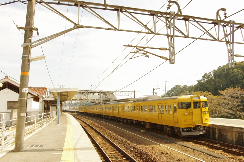 羽田空港から広島空港へ到着したのはお昼過ぎ。広島空港からまずは白市駅へバスで移動します。白市駅に到着してもすぐに電車は来ませんでした。おおよそ30分ほど待ったら到着した電車は4両編成の時代を感じさせる車両でした。佇まいがドッシリとしていて格好良かったな(写真は反対ホームに来た別の電車)