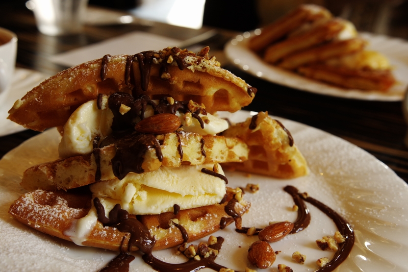 お昼ごはんを食べようかと思ったのですが、帰りの飛行機や空港までのリムジンバスの時間を考えるとあまり時間がないことが判明。とりあえず、目の前にあったお店でお腹に入れられるものを注文することに。と言っても、偶然入ったロープウェー乗り場前にあった「茶房こもん」さんがワッフル専門店だったらしく意図せず甘いもの。まぁ、甘いもの好きだから良いのですけどね(´∀`)