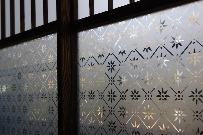 そして、二階の一室にあったこの窓。こう言う模様の入ったすりガラスってハイカラ感があっていいですよねぇ。