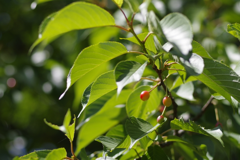 結局今年は満開の桜を撮る事なくシーズン終了。なんとなく見た桜の木にはさくらんぼがなっていました。綺麗な赤色!