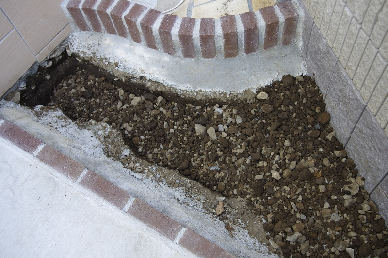 冒頭の写真のとおり、花壇スペースからスコップで土を掘り起こしてはバケツに移して庭に運び出しました。工事中は車も通る場所だったため、かなり固く踏みカメラれており、スコップで手彫りするのは非常につらかったです・・・スプーンでトンネルを掘る脱走犯になった気持ちです。笑