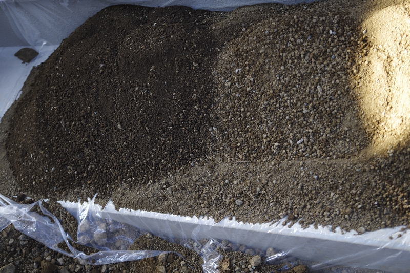 掘り起こした土をふるいにかけ、大きな石は最初に戻します。水はけを良くするための工夫です。