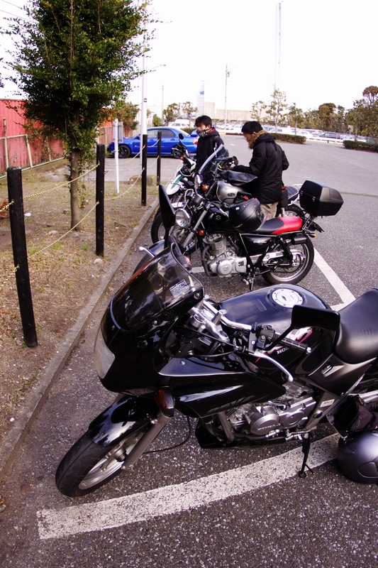凄い面白い面々での写真活動。手前からゼルビス(瀬田)、グラストラッカー(ただくん)、CL400(コタさん)、セロー(kanchiさん)、インプレッサだっけ・・・?!(イチさん)。いろんな乗り物で集合したのに、これスーパーカブ繋がりなんですよ。一人も乗ってきてないけどw