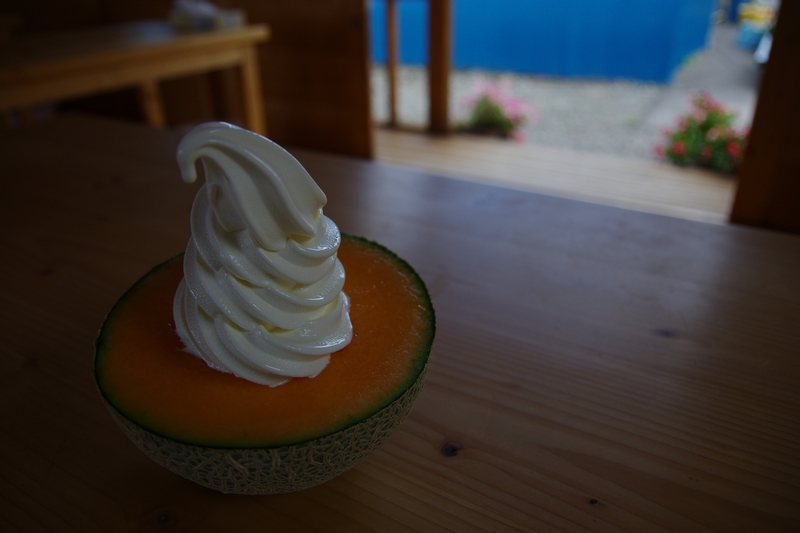 という事で、道東に進路をとっていた私ですが急転回。一路道央へ。そして、去年食べ損ねたマスクメロンを半分に割ってソフトクリーム乗せた贅沢デザートを頂きました!マジうますぎ!!(・∀・)