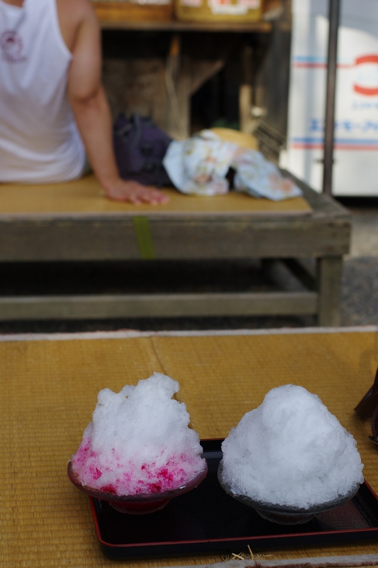 そんなわけで、基本的には同期が行きたい場所への道案内。はじめに兼六園。日本三名園として有名な場所で、他に偕楽園(岡山市)・後楽園(水戸市)があります。写真は園内の売店での一こま。むちゃくちゃ暑い中歩きでの移動だったので、カキ氷がむっちゃ美味しく感じて!笑