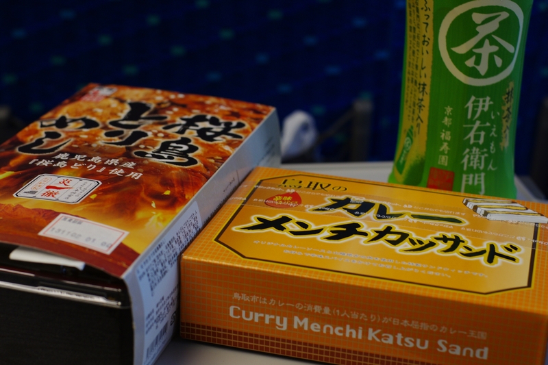 電車旅の醍醐味と言えば駅弁。本当は、せっかく東京駅から新幹線に乗るので東京のご当地モノが食べたかったのだけれど、ピンとくるものがなかったので「桜島とりめし」と「鳥取のカレーメンチカツサンド」を頂くことに。時刻は8時過ぎ。朝起きて一切飲み食いをしておらず空腹だったので2つも買ってしまった。美味しかった。