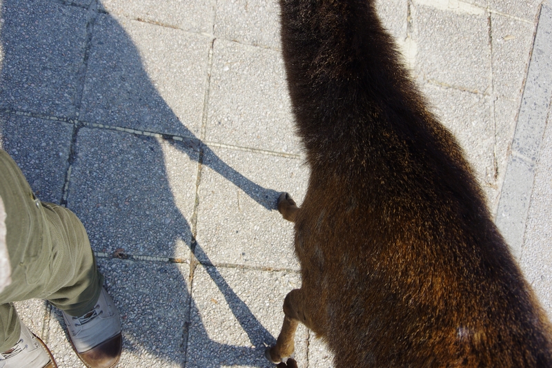 宮島に到着すると多くの鹿たちが出迎えてくれる。子供と子供と戯れていたり、他方では男性と添い寝していたり。凄い光景なのである。僕の脇を普通に通り過ぎていく野生動物。野生をなくした野生動物・・・「コーヒー牛乳のコーヒー抜き」のようなQuestionを感じざるを得ない光景である。