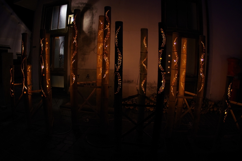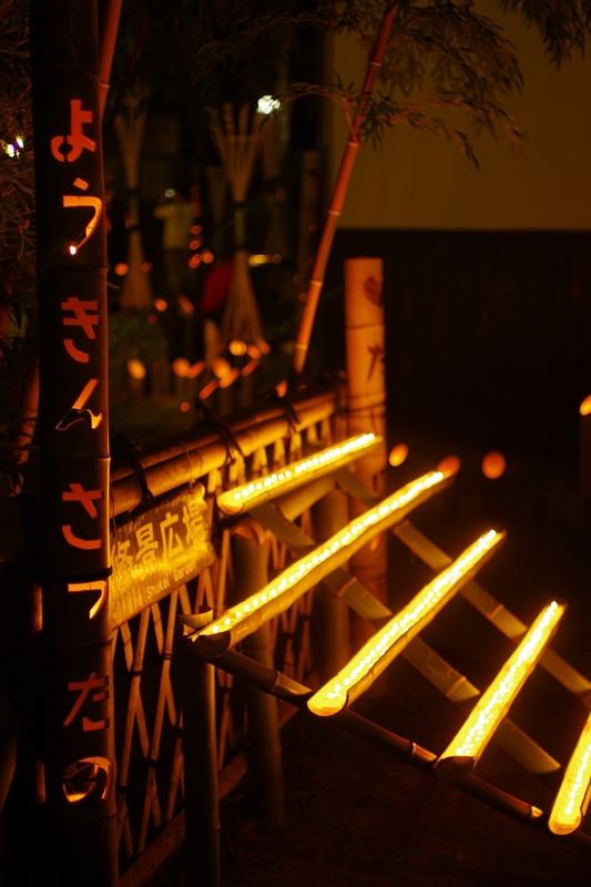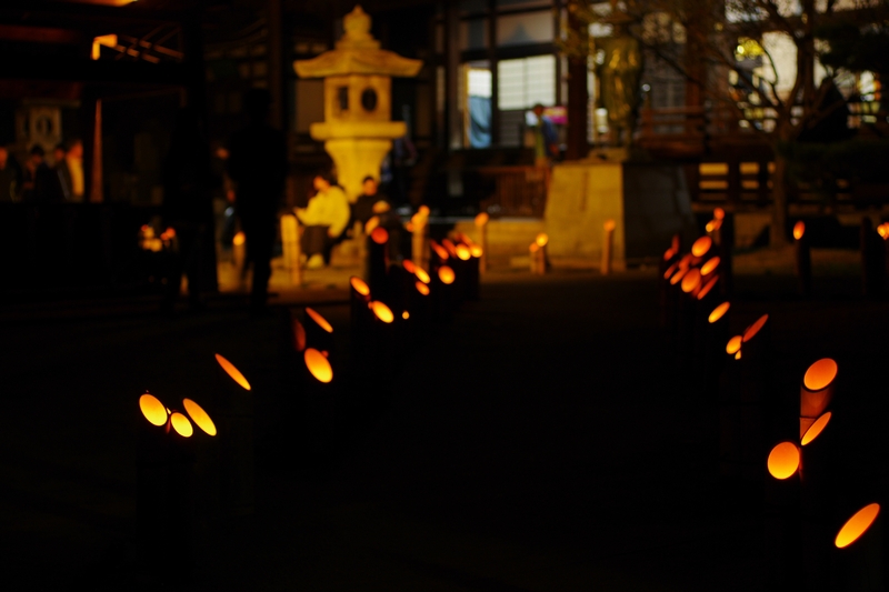 目の前には心待ちにしていた竹筒の灯篭たちが柔い光を放っていた。