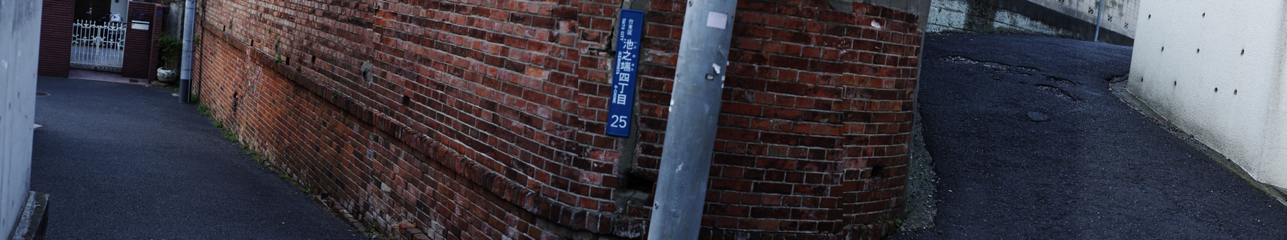 少し暗くなってきた頃に凄い角度の坂道にたどり着きました。何枚か写真を撮って、つなげてみました。伝わりますかね?曲がり角と坂の勾配。ここが生活道なんだろうけれど、少し異世界の雰囲気を感じました。
