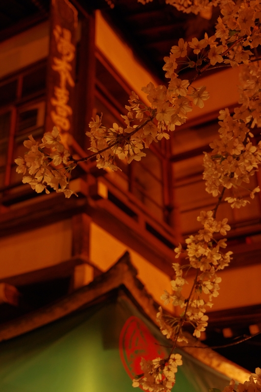 夜桜×温泉街という素敵コラボ(・∀・)