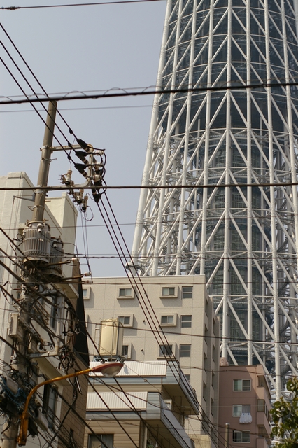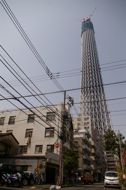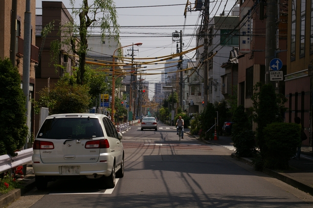 スカイツリーと反対側を見ると、変哲のない普通の道路。こっちの風景も好きだったりする。