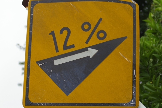 普通に見たら12%下がっているこの標識も、こういう角度で撮影すれば12%アップしているように見える。むかしの私よりは幾分ポジティブになったのかな?