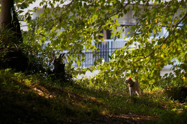 人間にも小動物にも好かれない私は、この猫を撮影するのに300mm望遠レンズを使用(笑) もう少し近づけるかな?と思って動いた瞬間、逃げていきました。・・・わかってたもん!(`;ω;´)