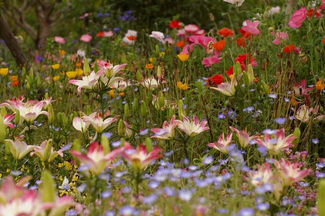 ユリ!このユリかわいい!!まわりの花々との共演(?)もいい感じです。