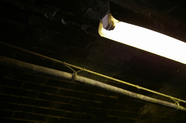 トンネルに到着して、カメラを取り出し、トンネル内へ。一歩、二歩・・・三歩で足が止まる。なんか雰囲気が怖い。天井についている蛍光灯もどこか寂しげ。