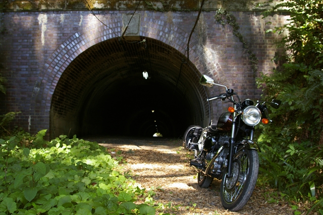 だそうだ。なので、勇気を出して通ることに。現在は車両通行禁止で、歩行者のみ。バイクはひいて歩くことに。途中でお化け出てきたらバイク捨てて逃げよう!とか本気で考えたとか。