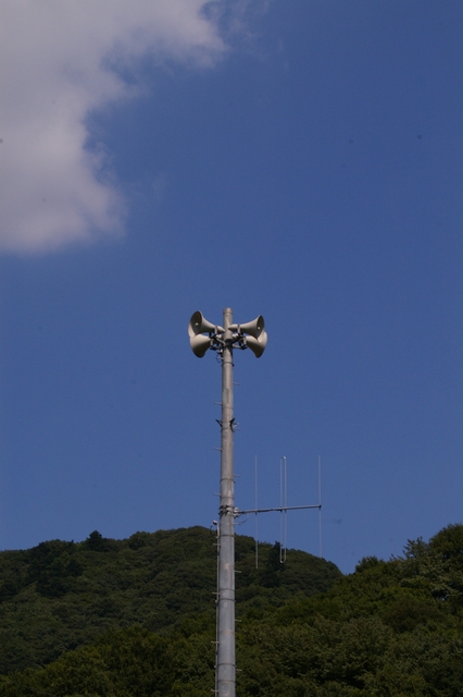 真っ青な空がとても気持ちの良い日でした。自然の中にポツンと、人間に対して呼びかけを行うための拡声器。・・・まぁ、なんてことはない風景なんですけどね。